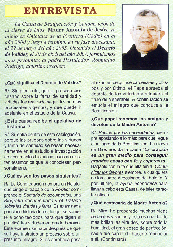 [BIOGRAFÍA] [PROCESO DE BEATIFICACIÓN] [BOLETINES PERIÓDICOS] [TESTIMONIOS DE INTERCESIÓN] [ORACIONES] [MÁS INFORMACIÓN]