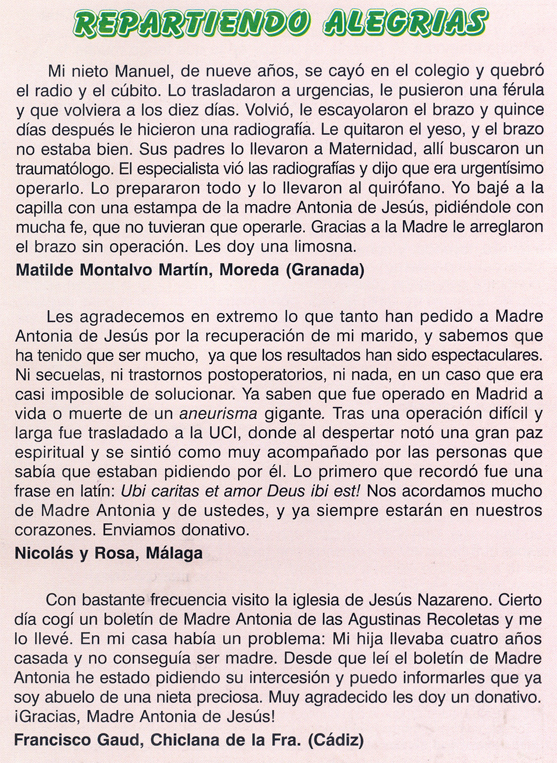 y me fue concedido. Envío donativo. (Una madre de Granada) |