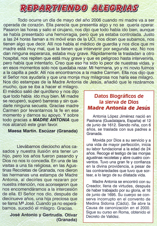 | Gracias, Madre Antonia de Jesús, por estar
