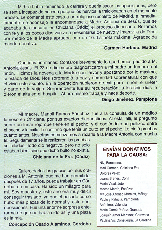 | Mando un donativo para la causa de la Madre Antonia