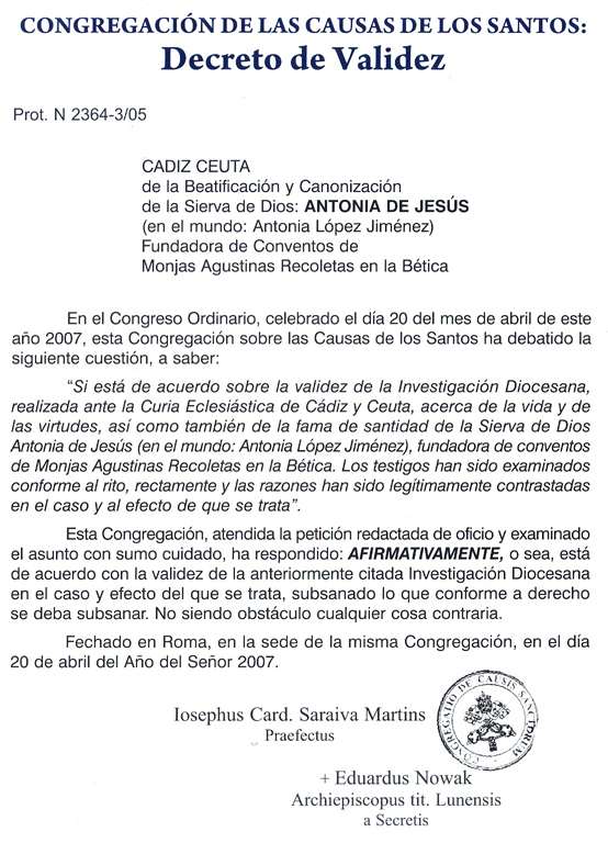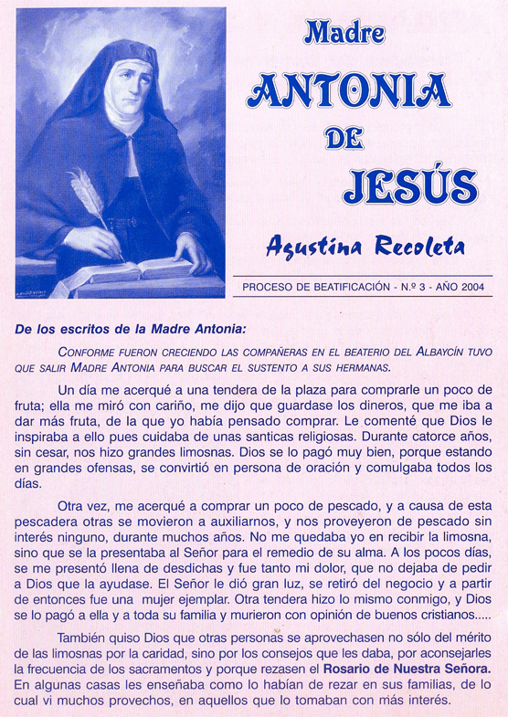 [BIOGRAFÍA] [PROCESO DE BEATIFICACIÓN] [BOLETINES PERIÓDICOS] [TESTIMONIOS DE INTERCESIÓN] [ORACIONES] [MÁS INFORMACIÓN]