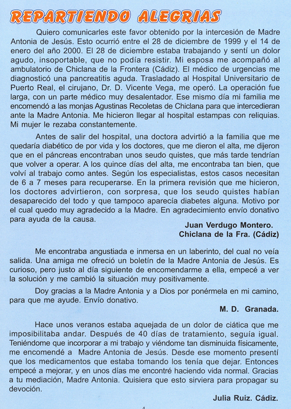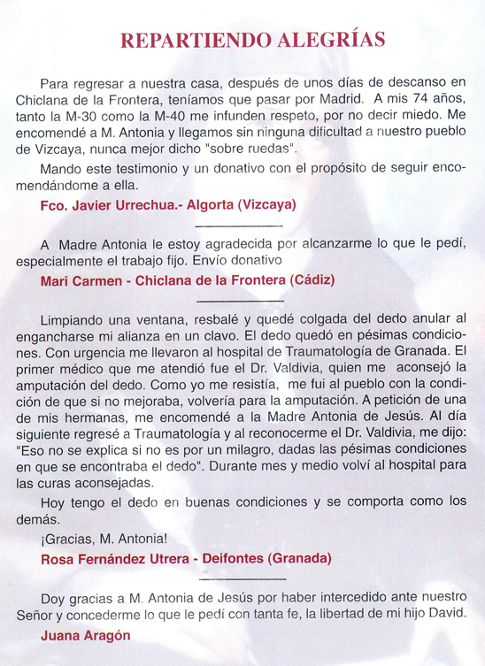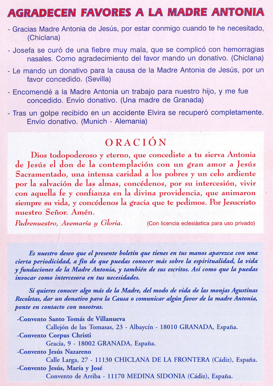 | Mando un donativo para la causa de la Madre Antonia