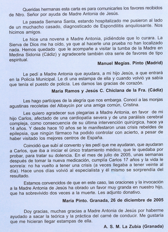 | Gracias, Madre Antonia de Jesús, por estar
